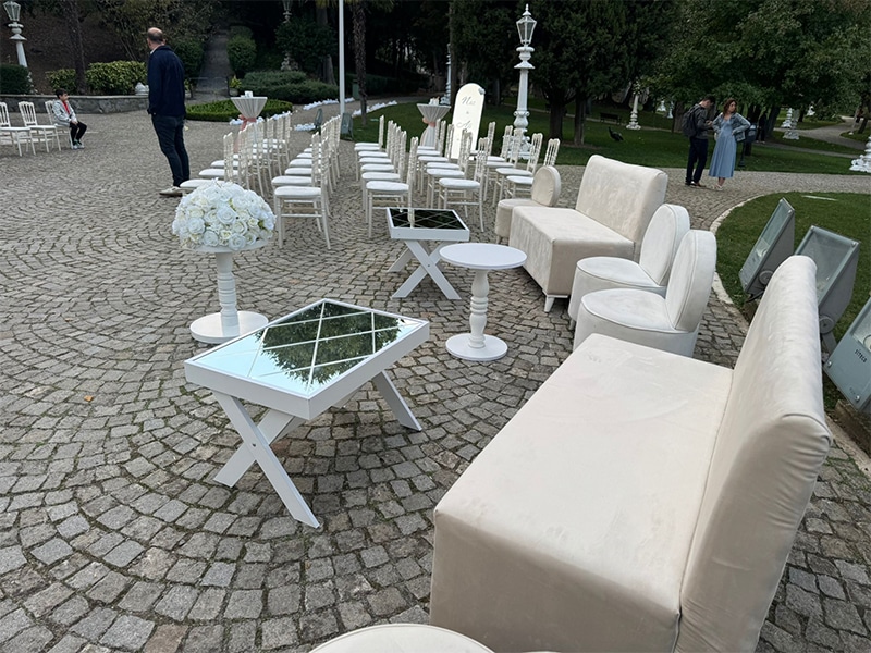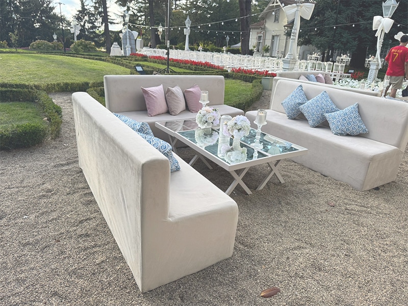 İster açık alanda ister kapalı mekânda olsun; davetinizin estetiğini bozmadan, uyumlu ve zarif oturma alanları oluşturmak bizim işimizdir.
