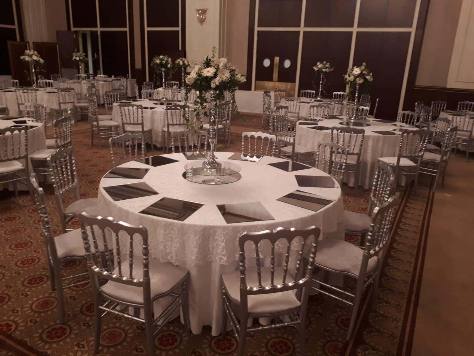 Tiffany sandalye kiralama : Altın sarısı ve gümüş grisi renklerinde şık tiffany sandalyeler etkinlik alanınıza kurulur. Talebinize göre tülle süsleme de yapılabilir.
