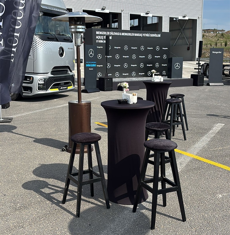 Siyah rengin sağladığı zarafet, özellikle açık hava etkinliklerinde ve gece konseptlerinde mekânın havasını tamamen değiştirir. Işıklandırma, dekor ve diğer ekipmanlarla kolayca bütünleşerek mekâna şık bir profesyonellik katar. Ayrıca kurumsal etkinliklerde marka renkleriyle çakışmadan ortama uyum sağladığı için tercih edilen en pratik çözümlerden biridir.